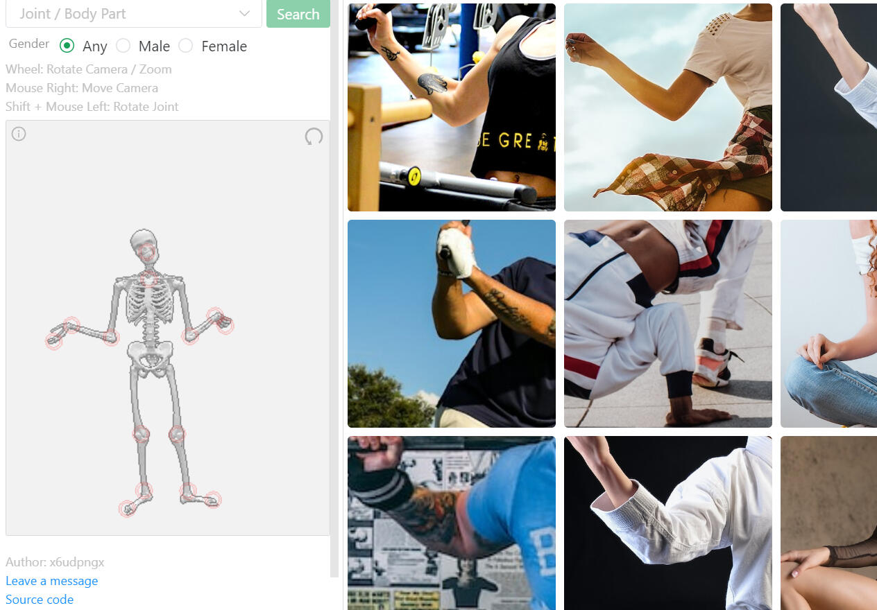 Pose a skeleton and search for references based on the posed body part, or break the skeleton's joints - I'm not your mom.